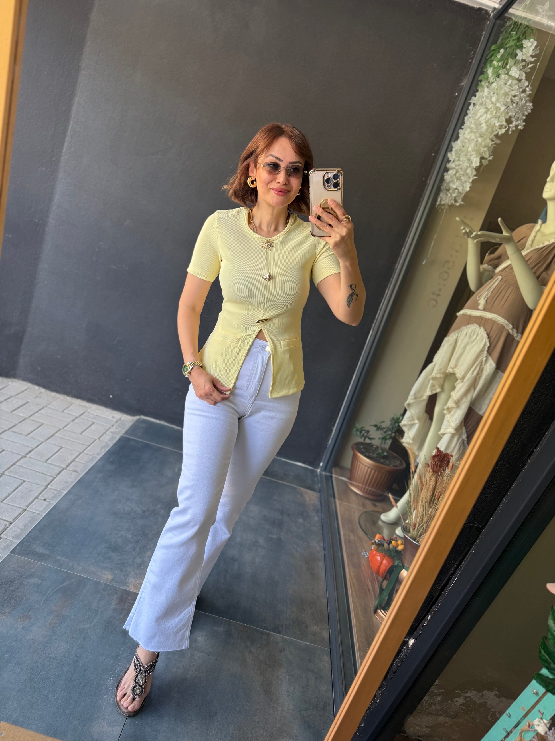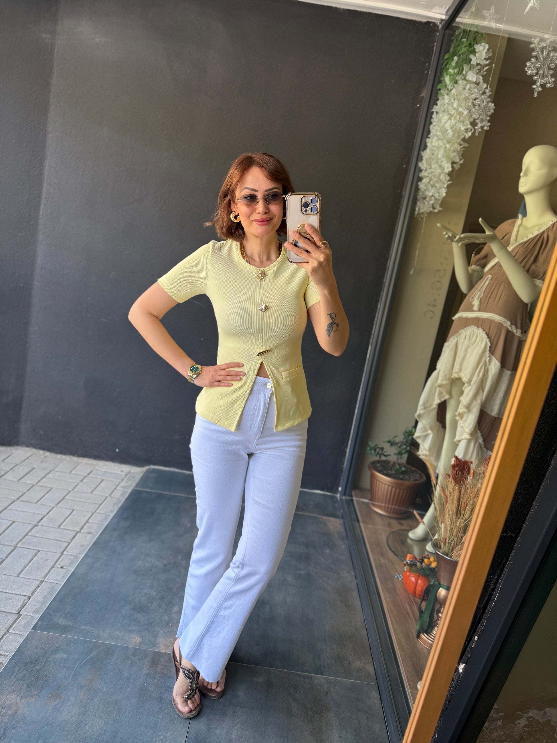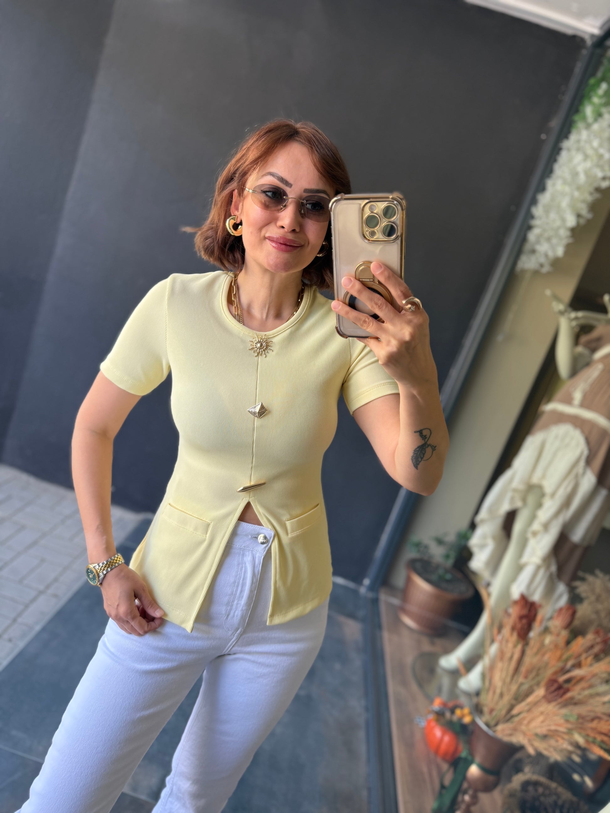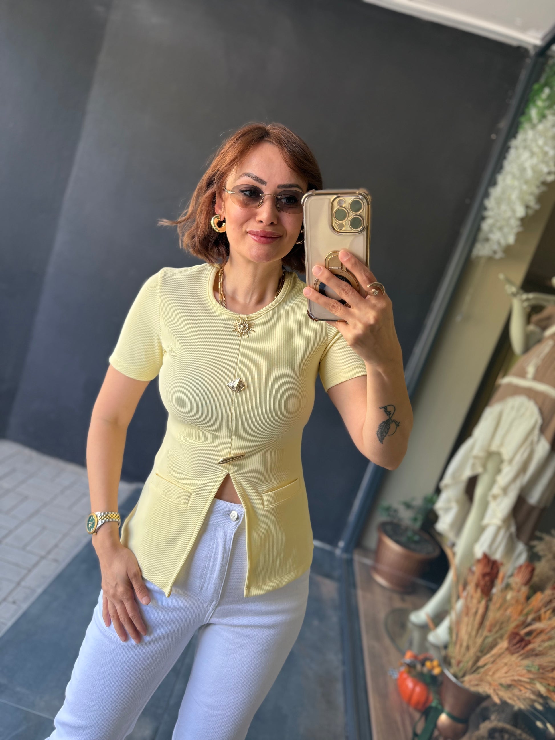 Mzr Sarı Gold Düğmeli Bluz