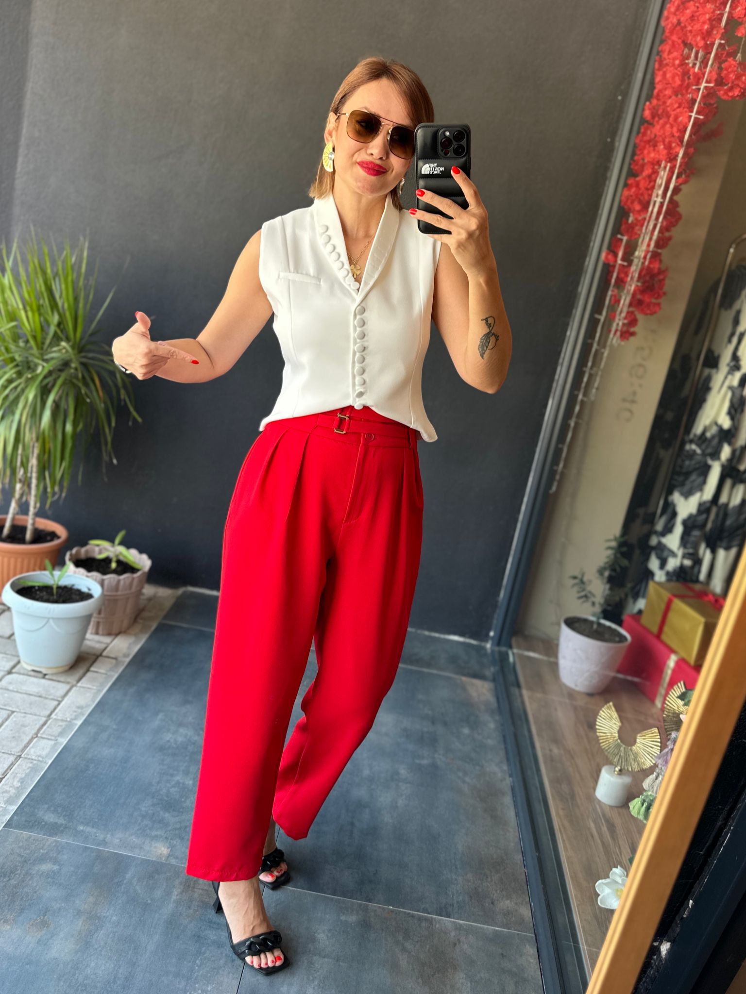 Nessy Kırmızı Tokalı Pantolon