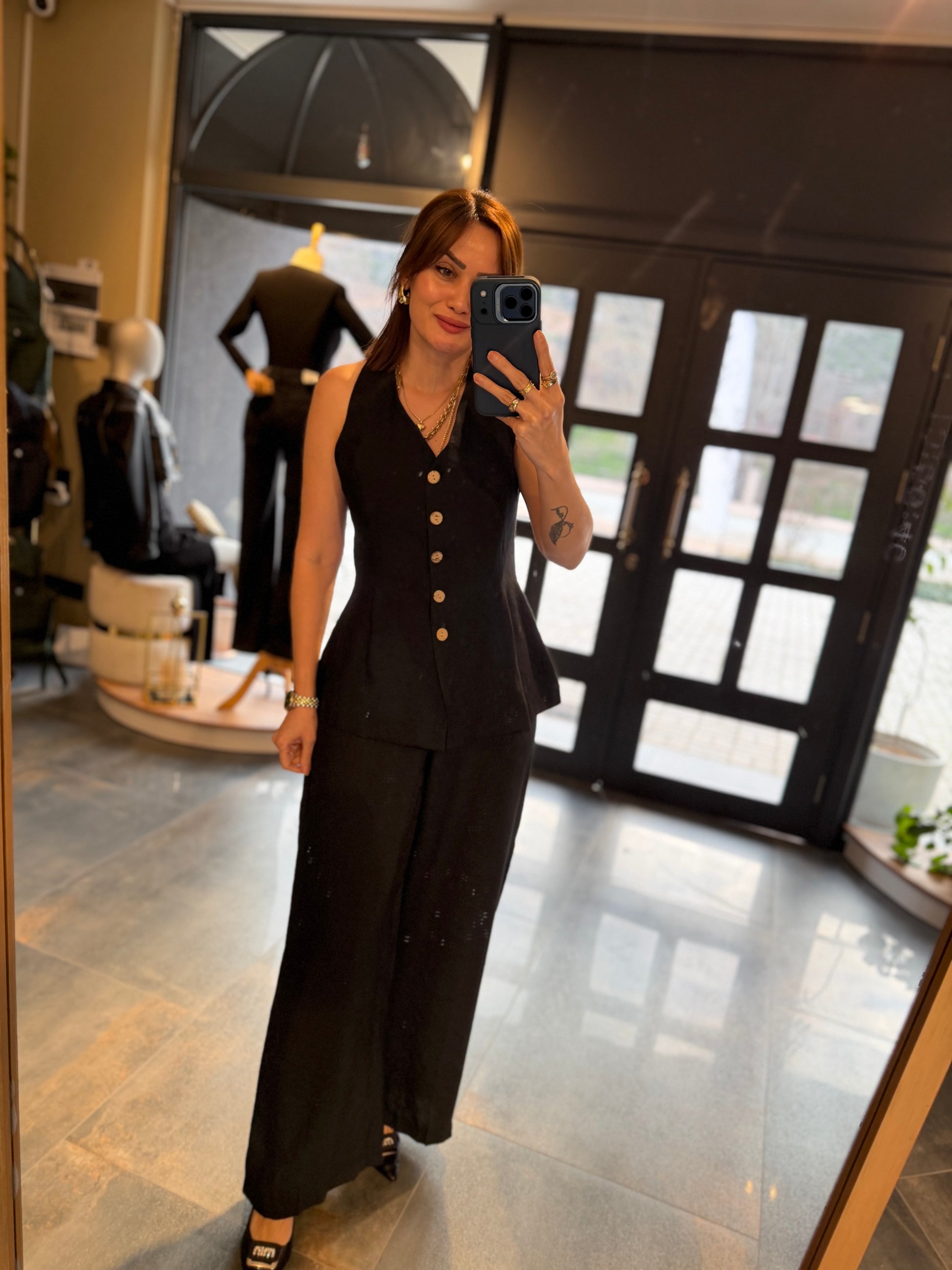 Newstar 7 Siyah Tensel Yelek &Pantolon Takım