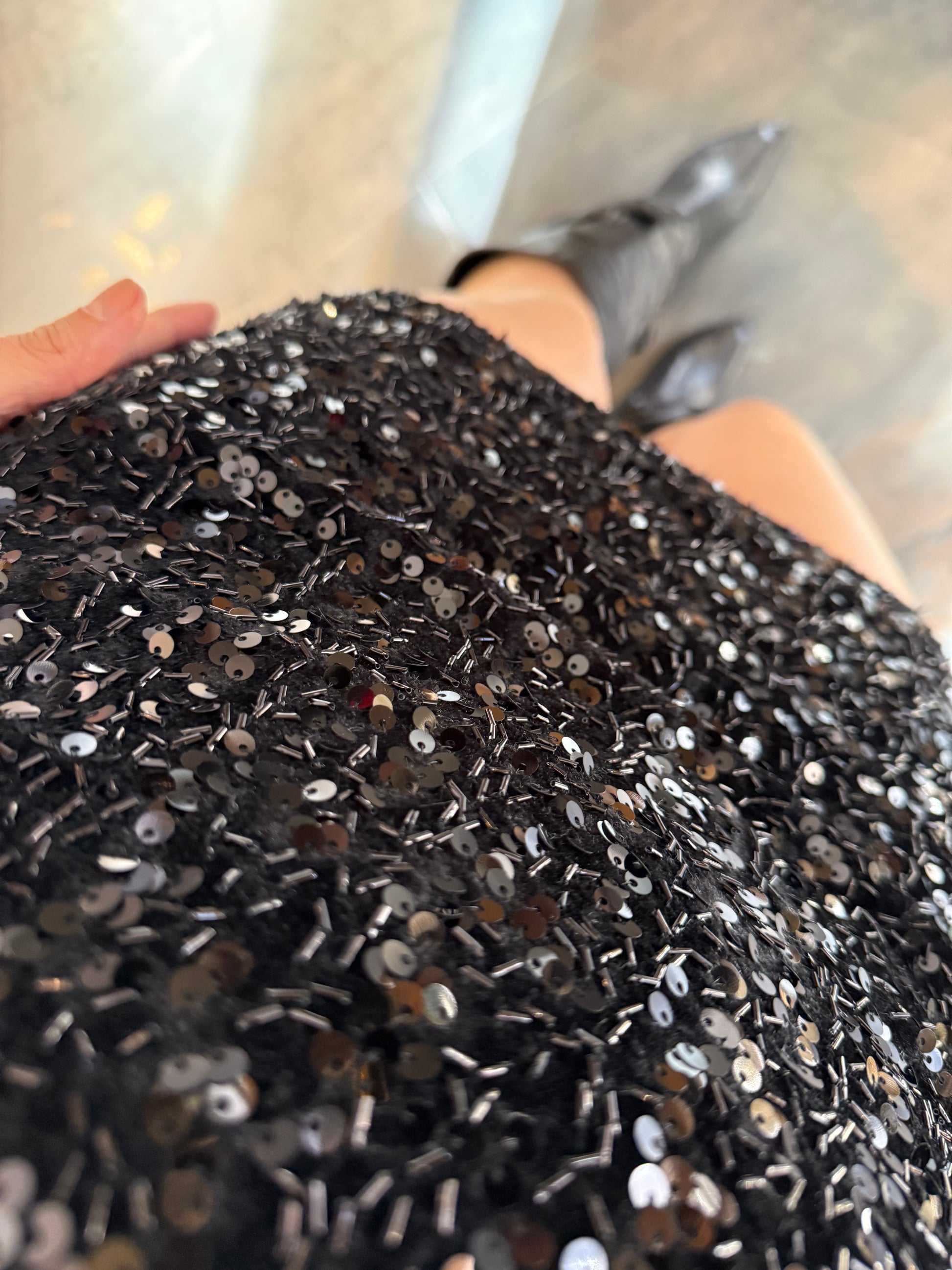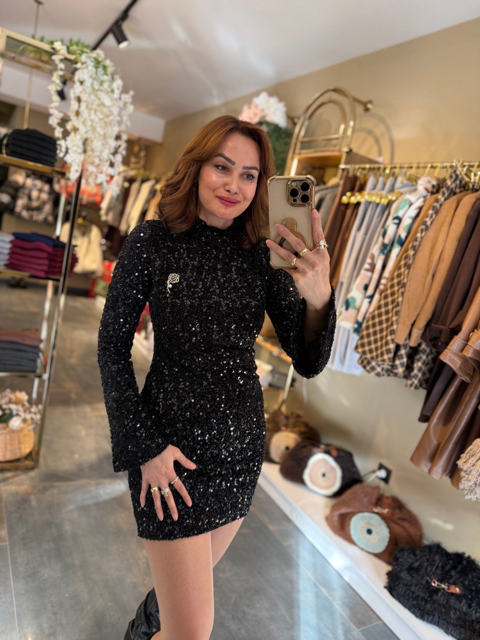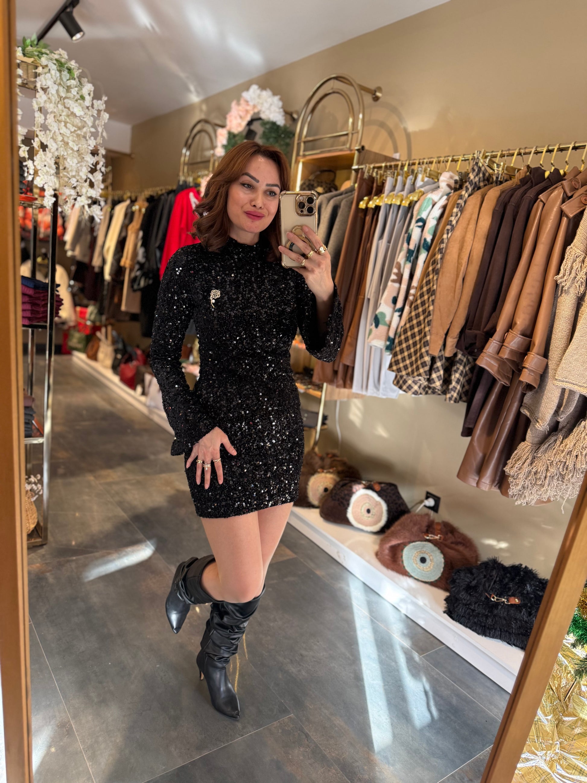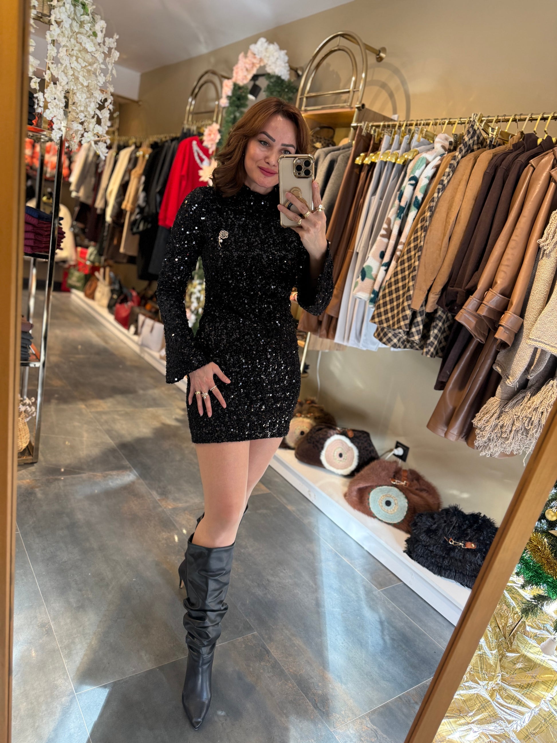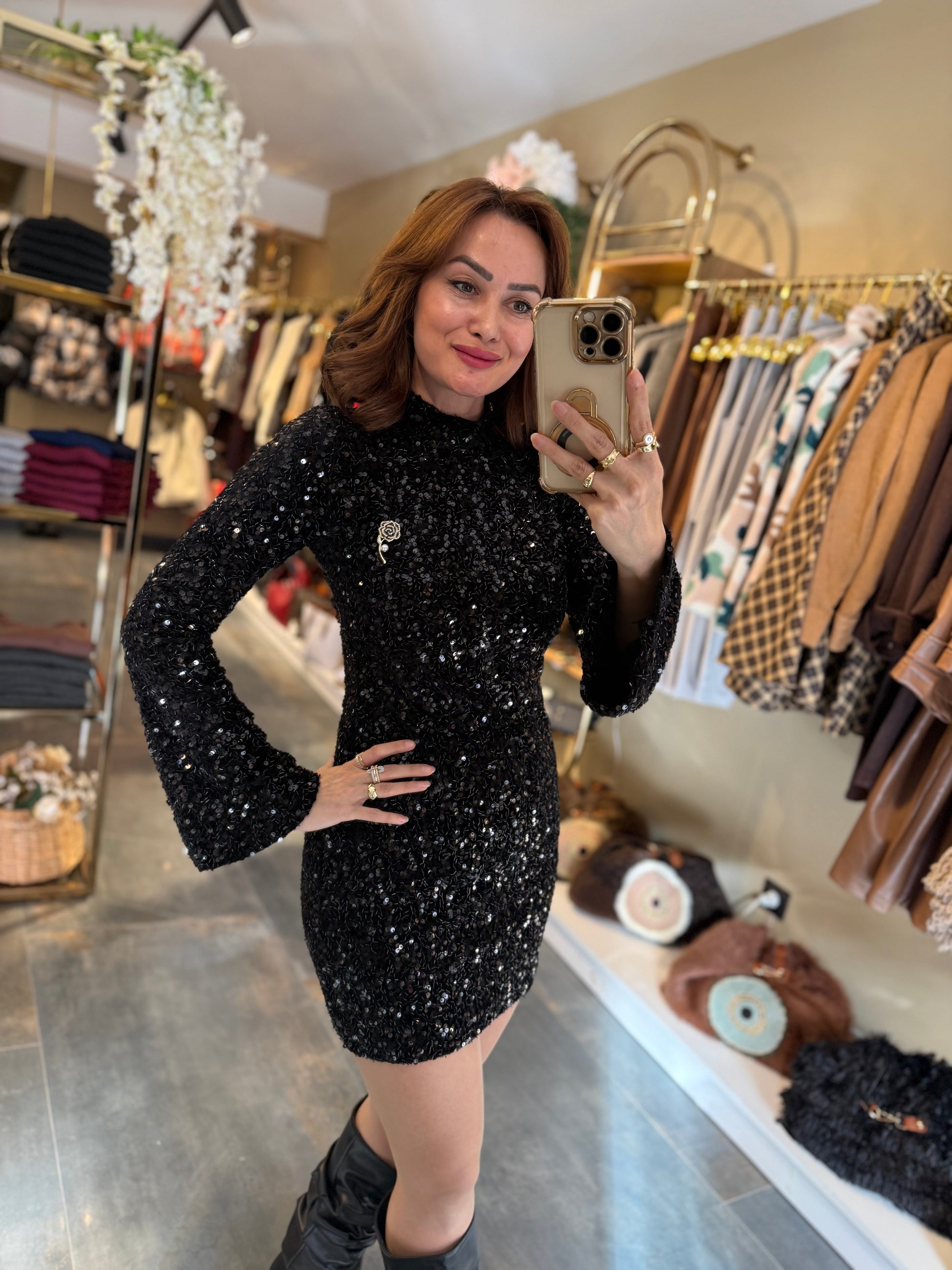 Nira İspanyol Kol Pullu Siyah Elbise