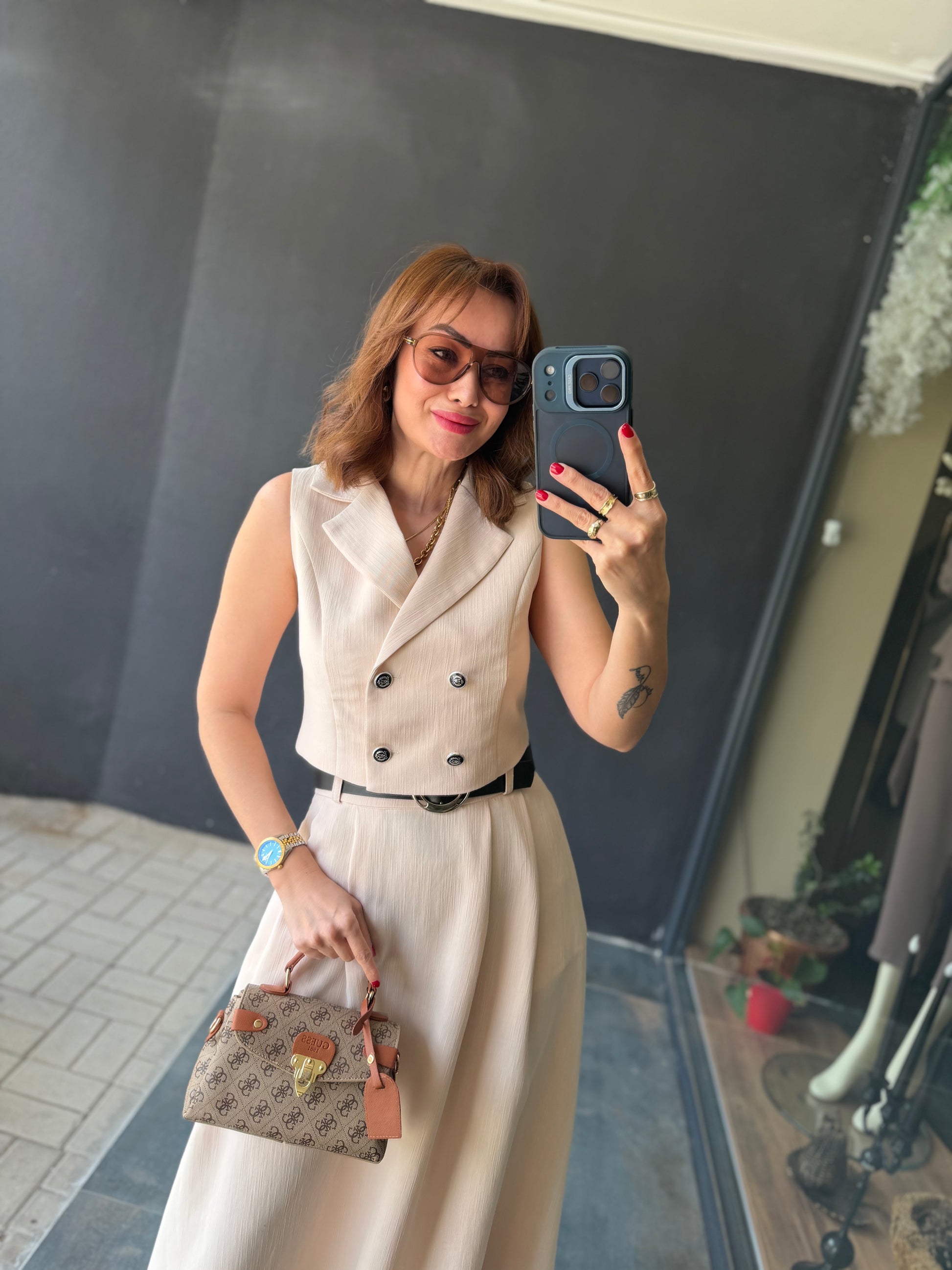 Parasidas Bej Etek & Yelek Takım
