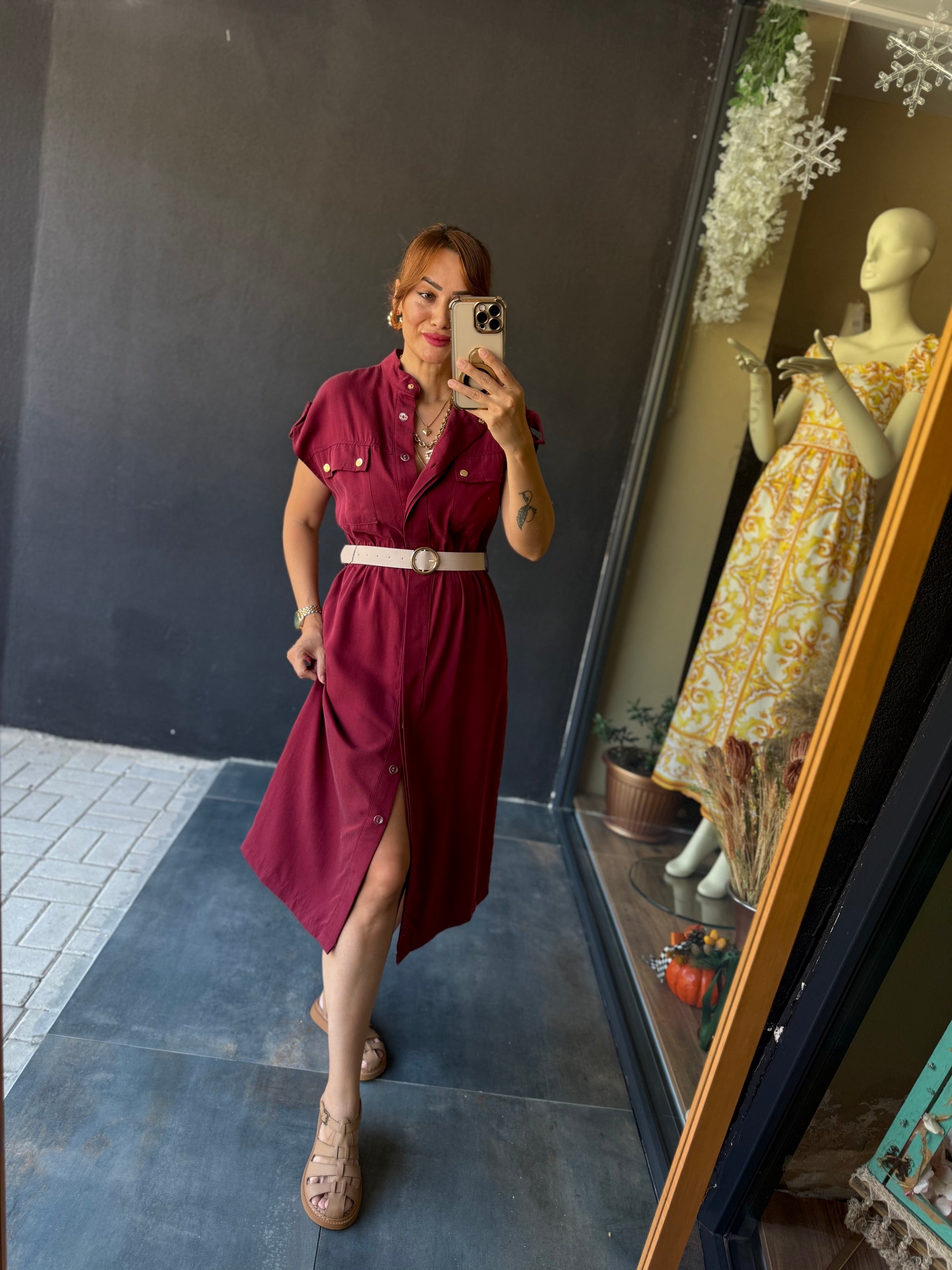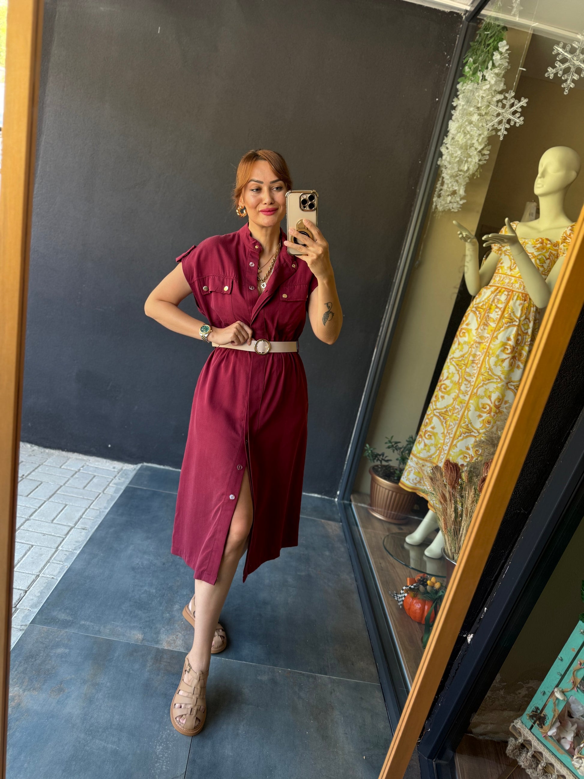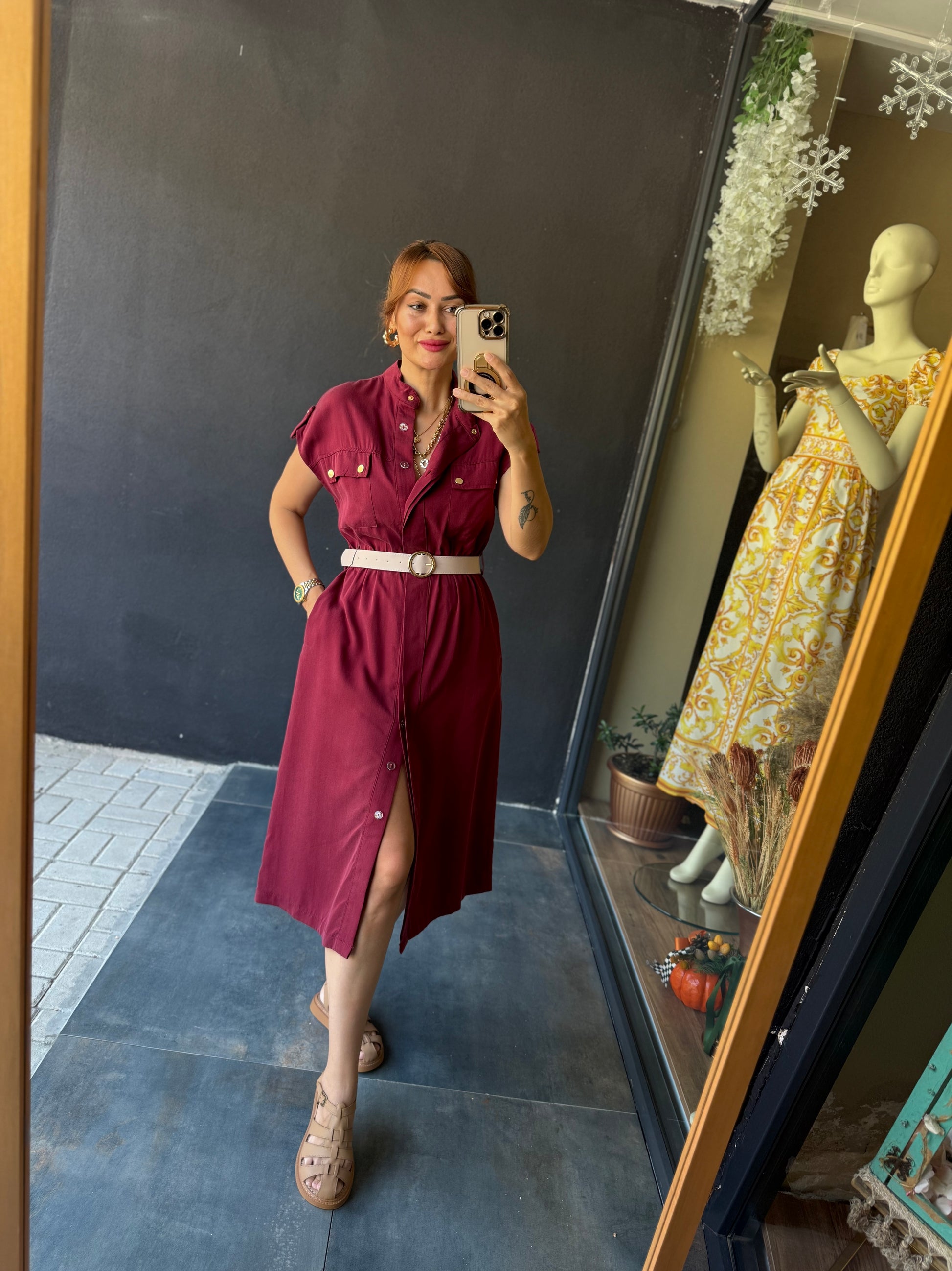 Puglia Bordo Tensel Elbise