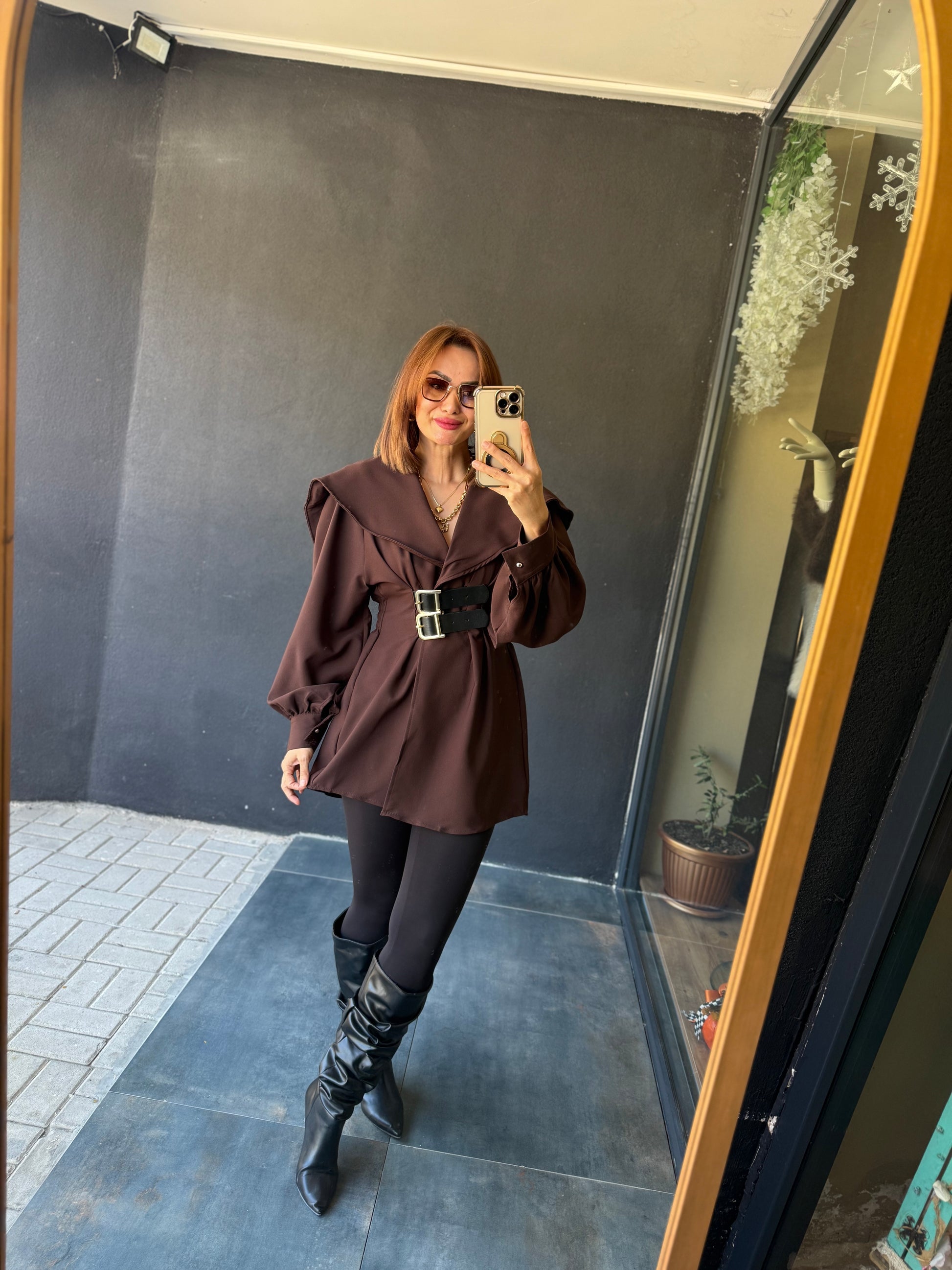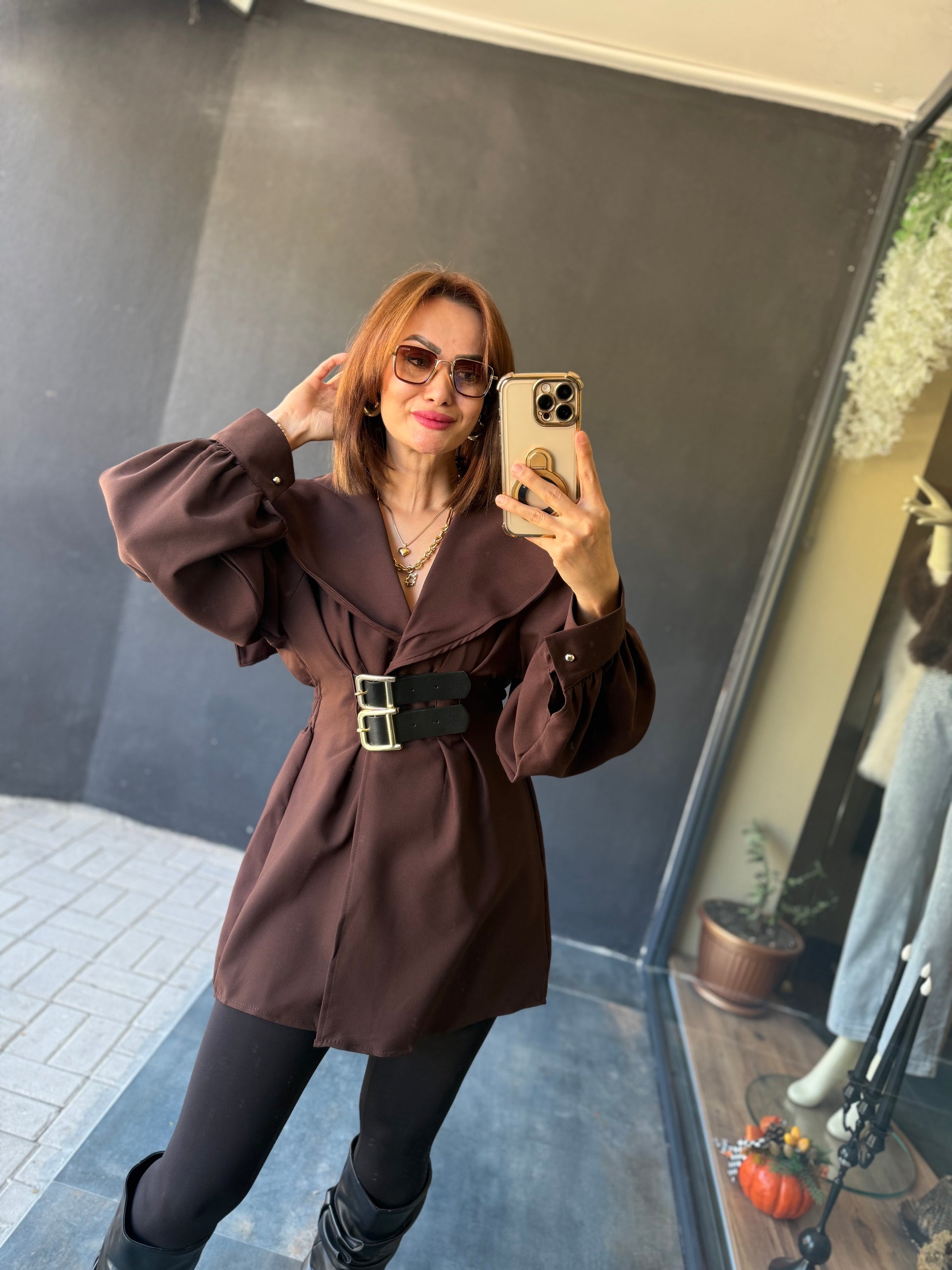Şamda Kahve Şal Yaka Ceket