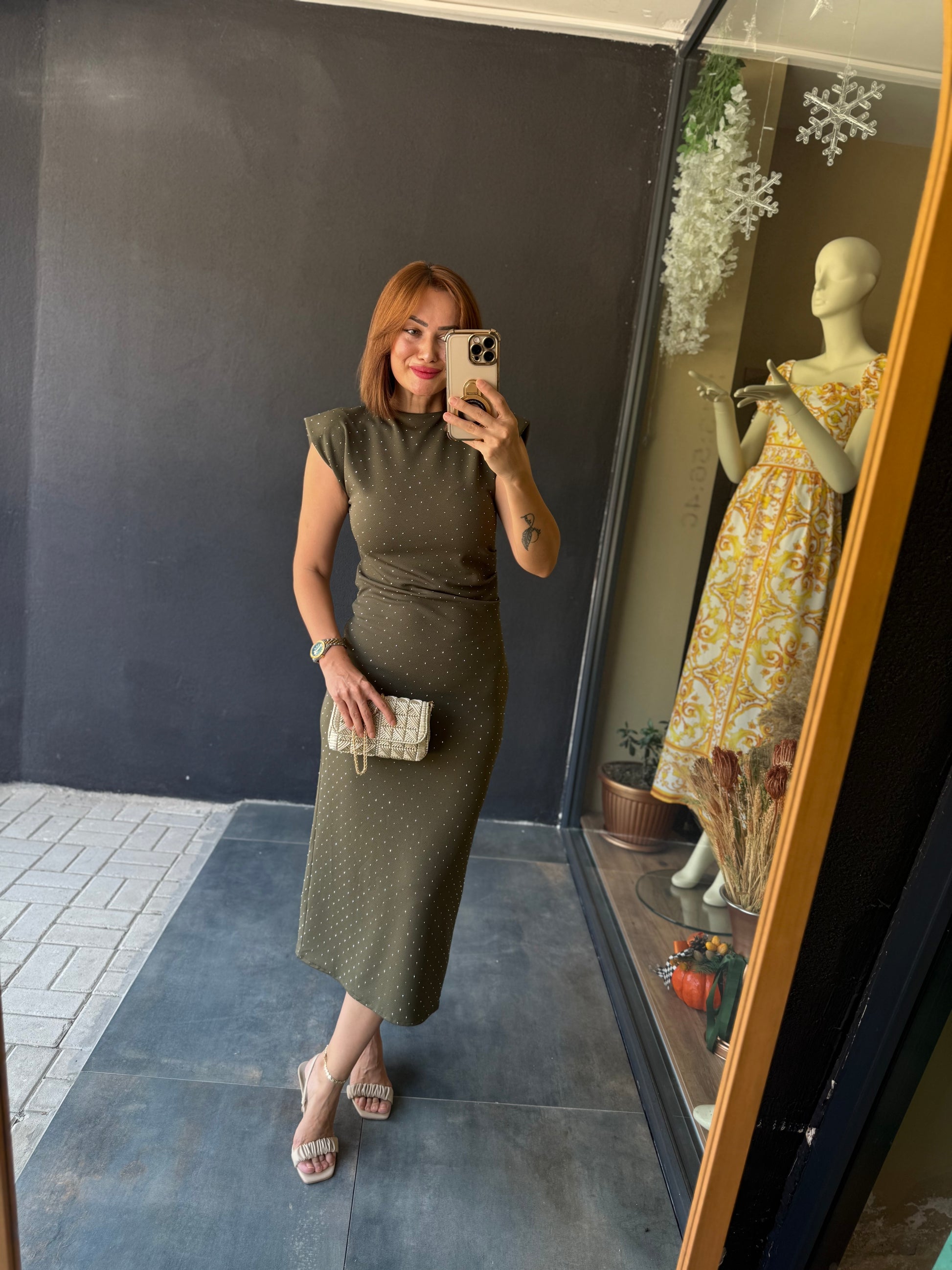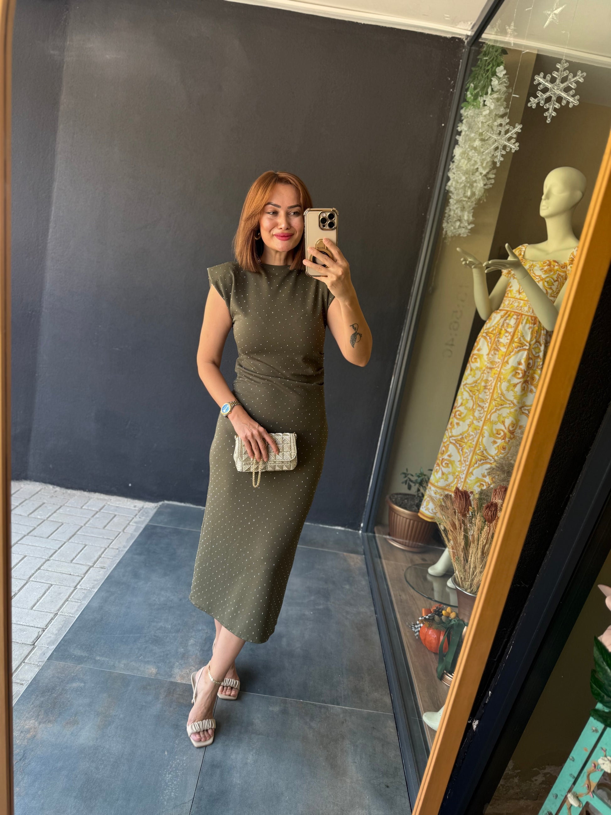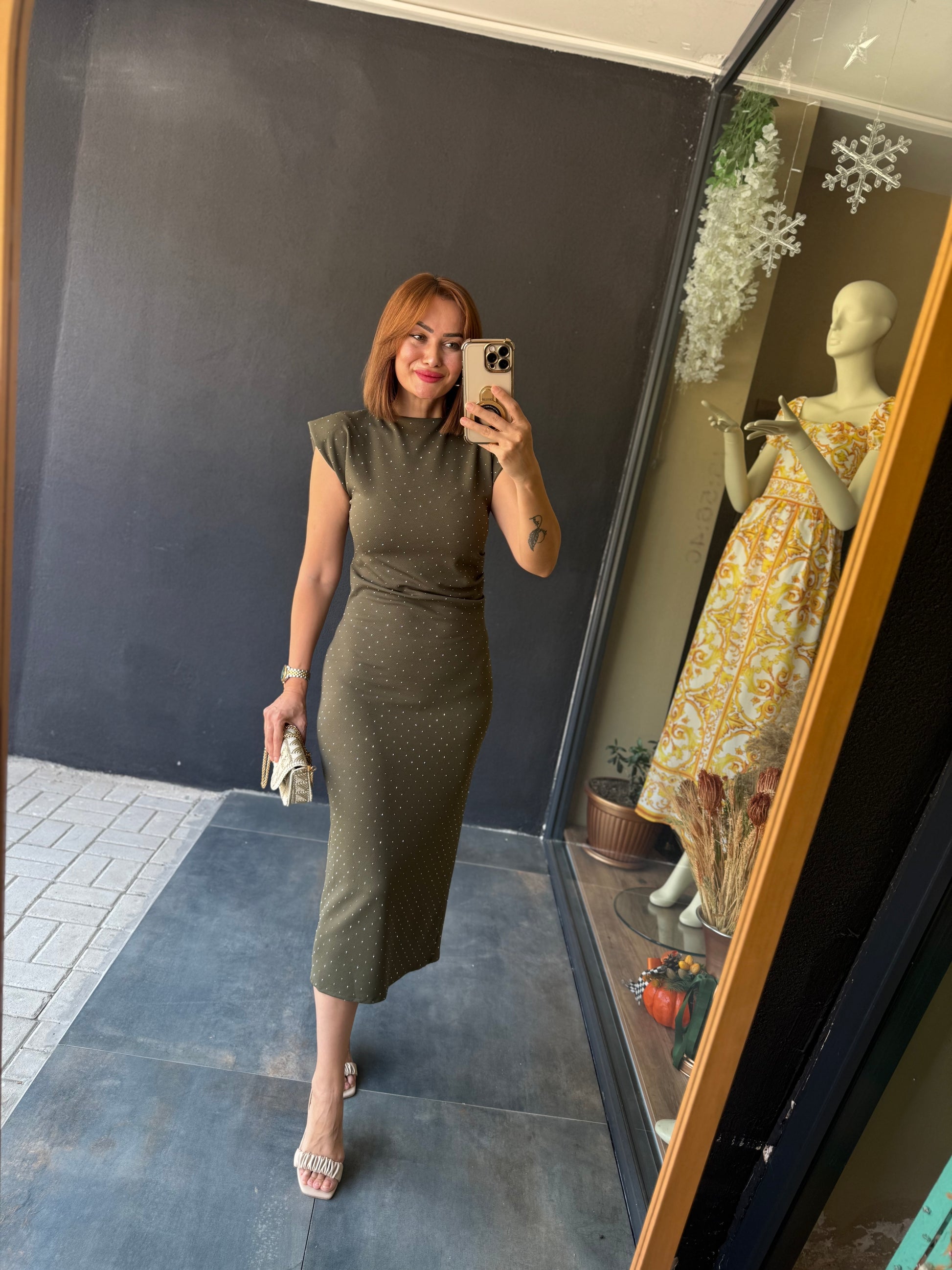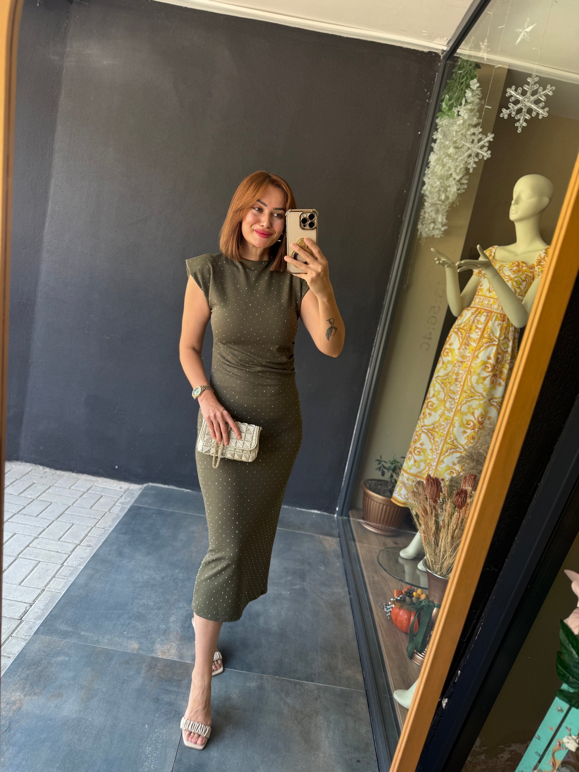 Shine Buzy Haki Kalem Elbise