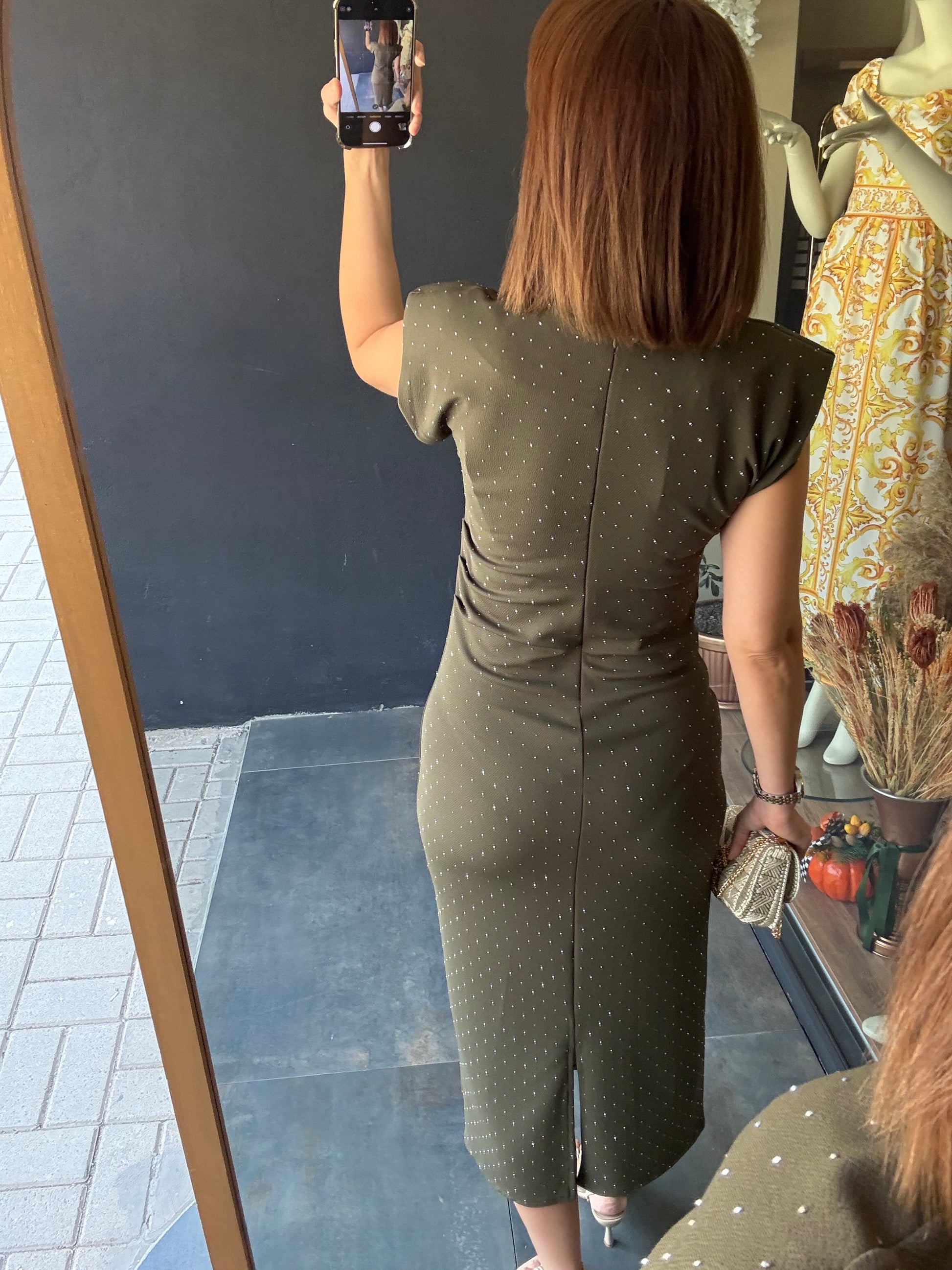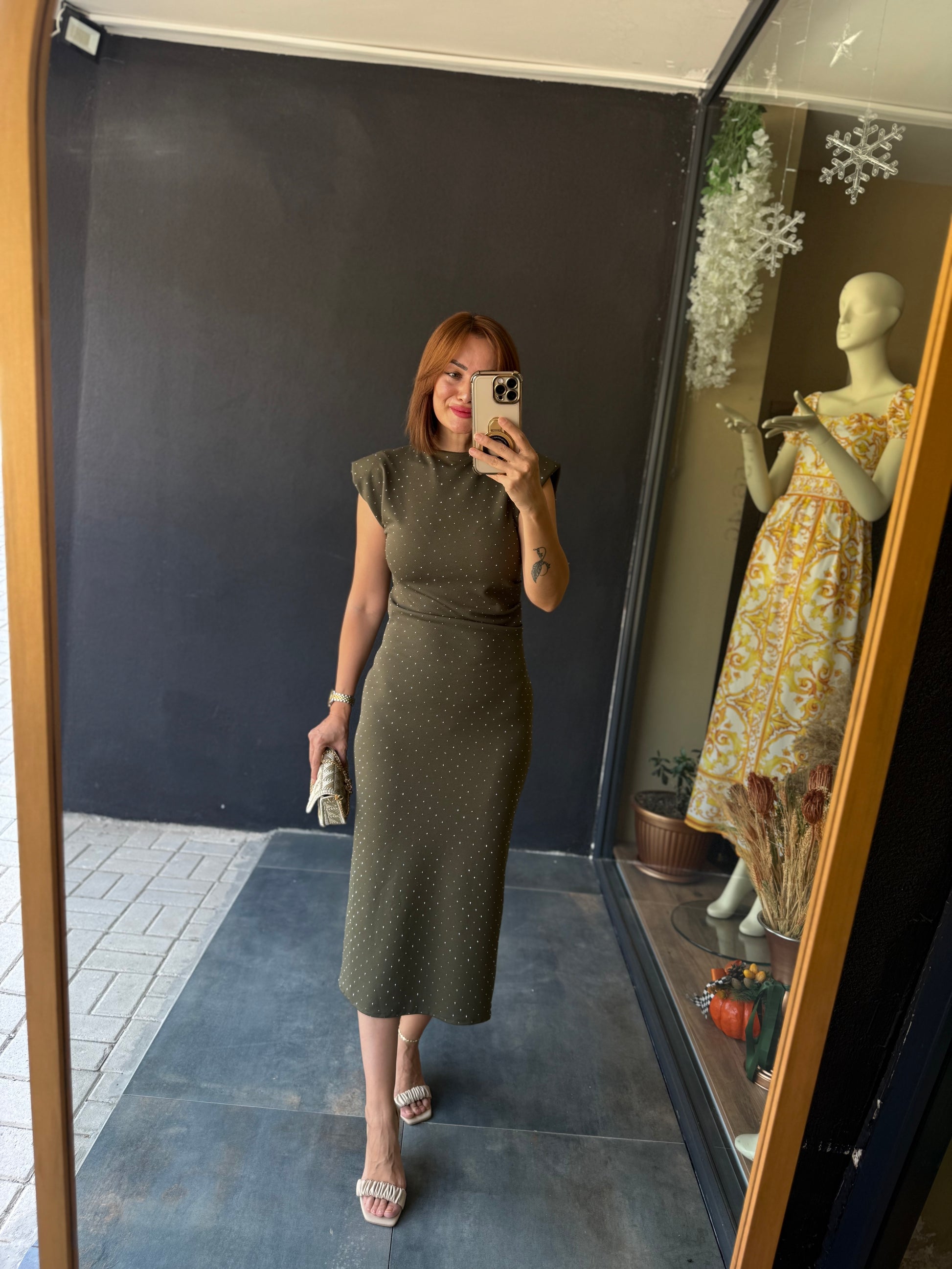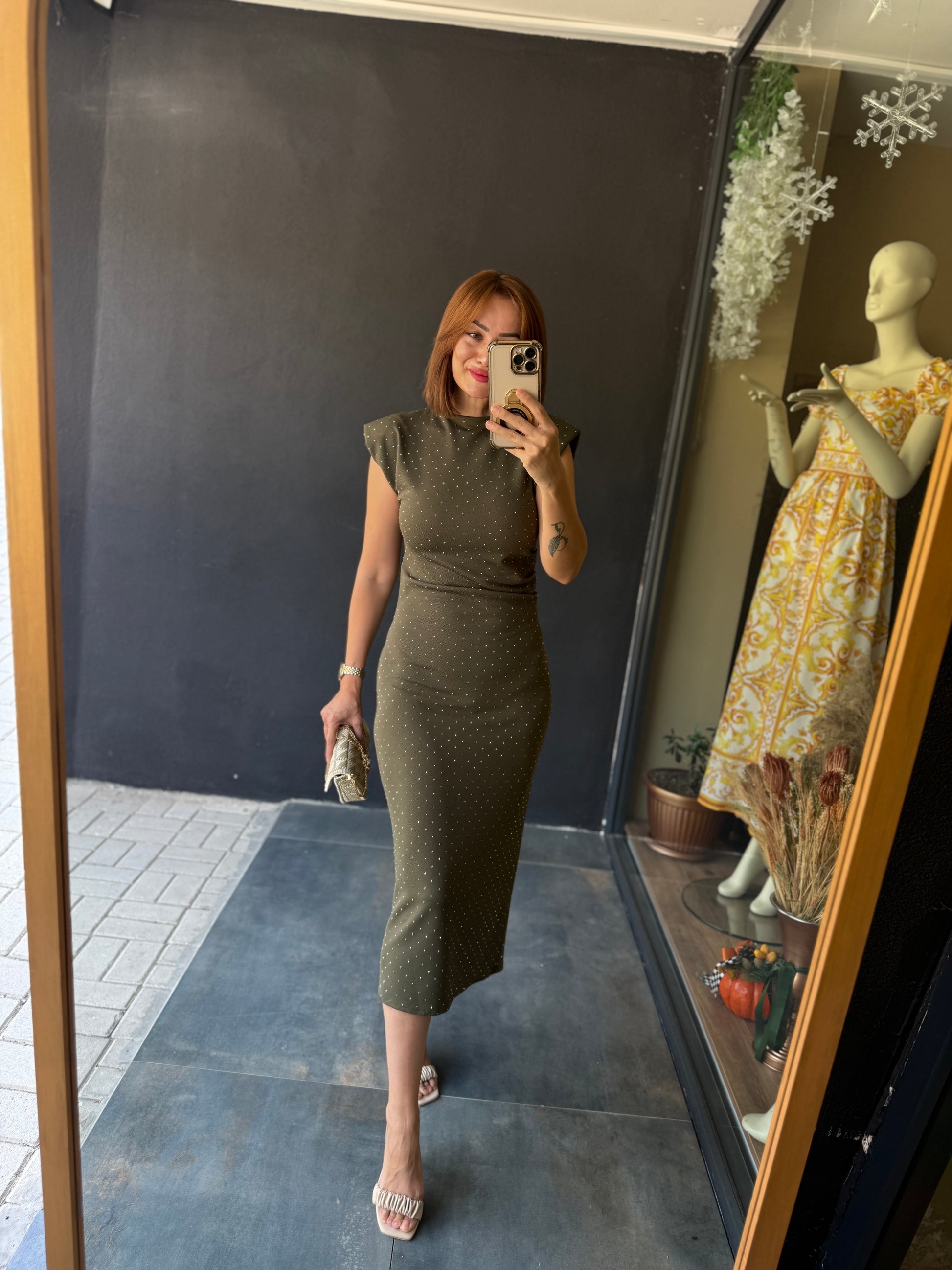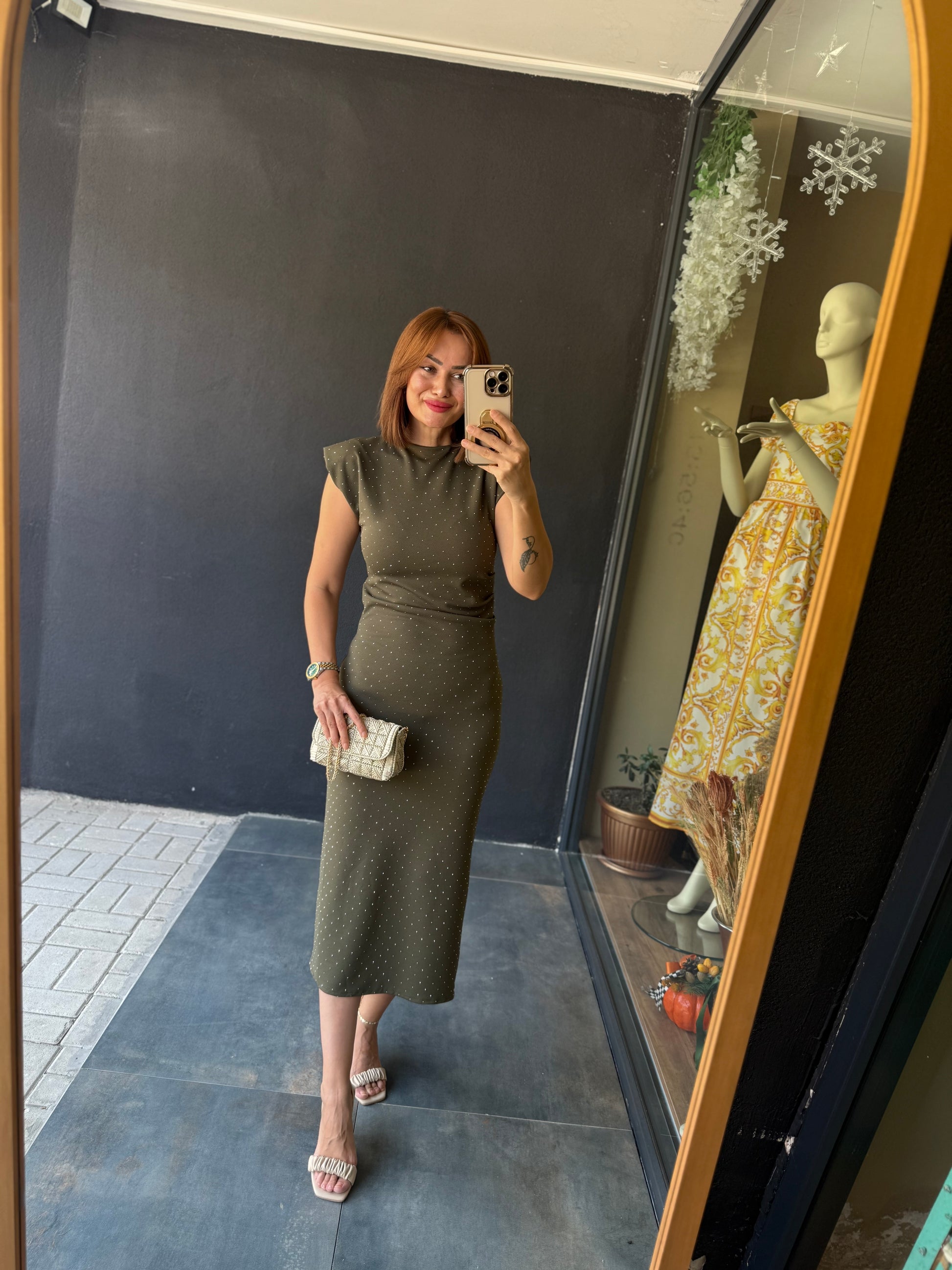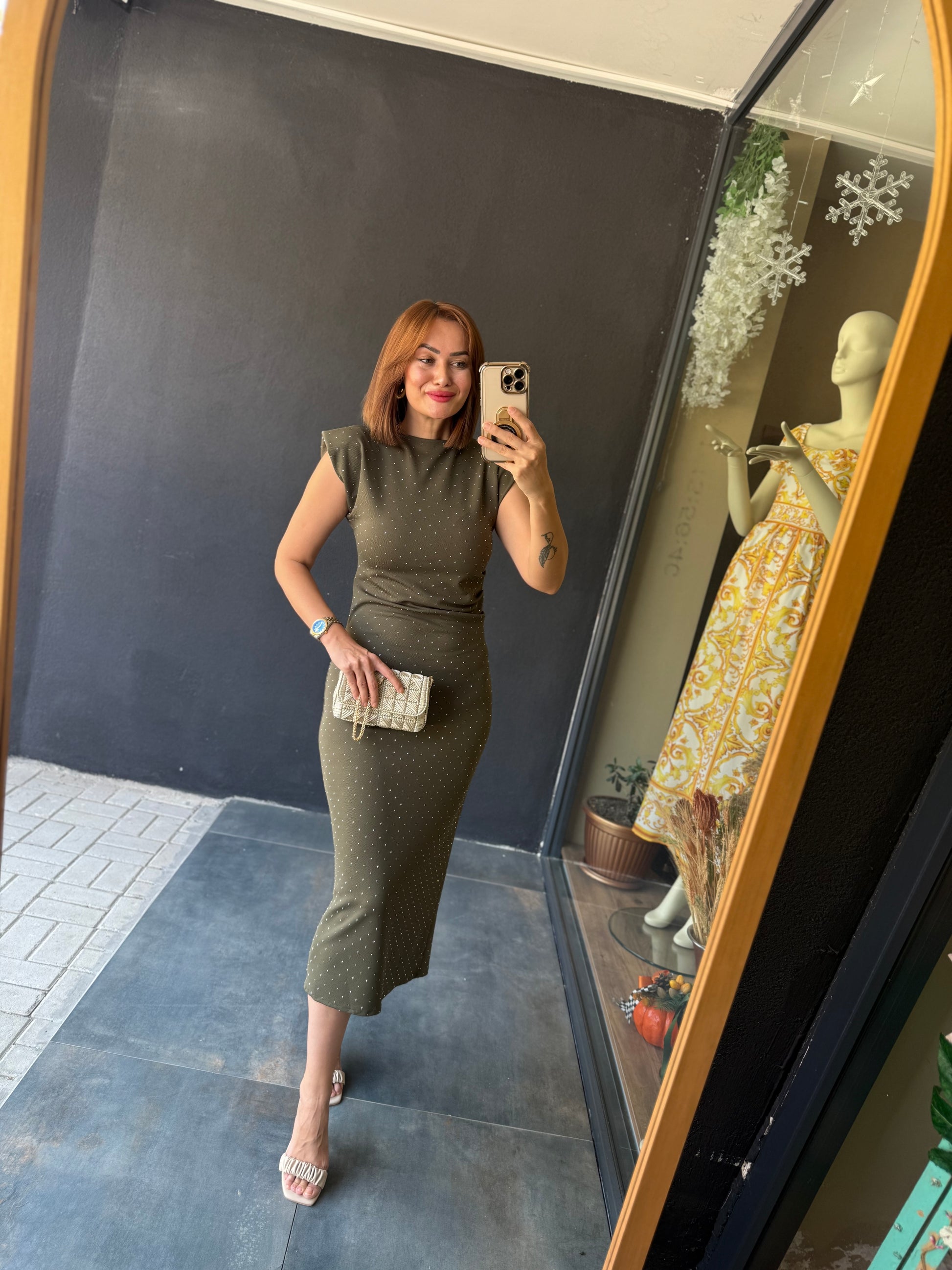 Shine Buzy Haki Kalem Elbise