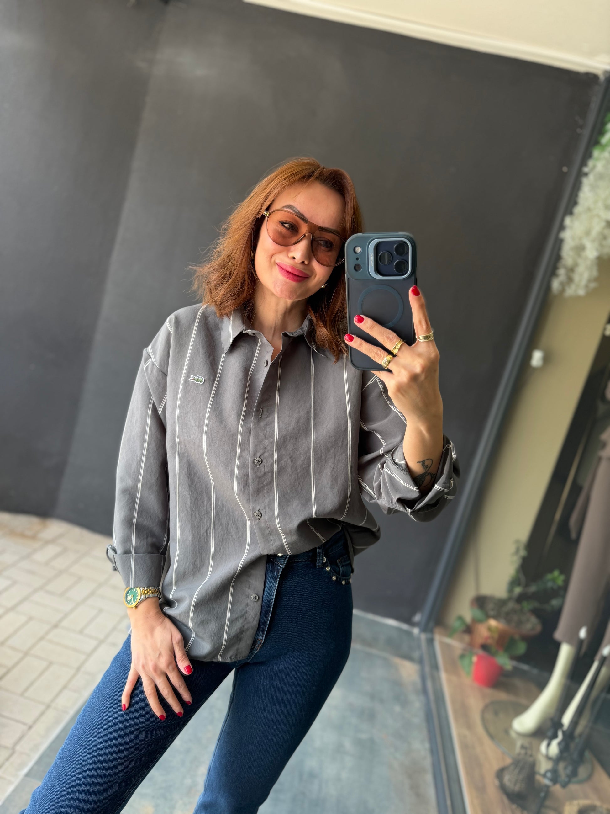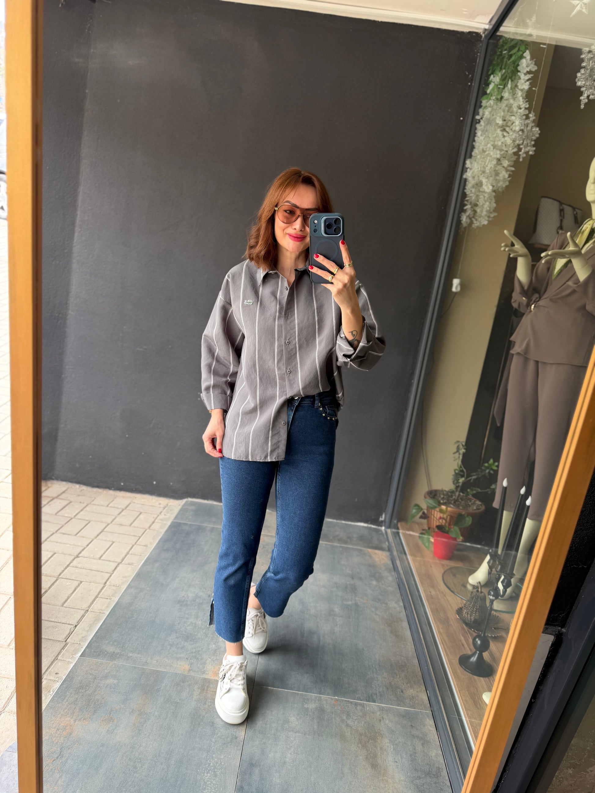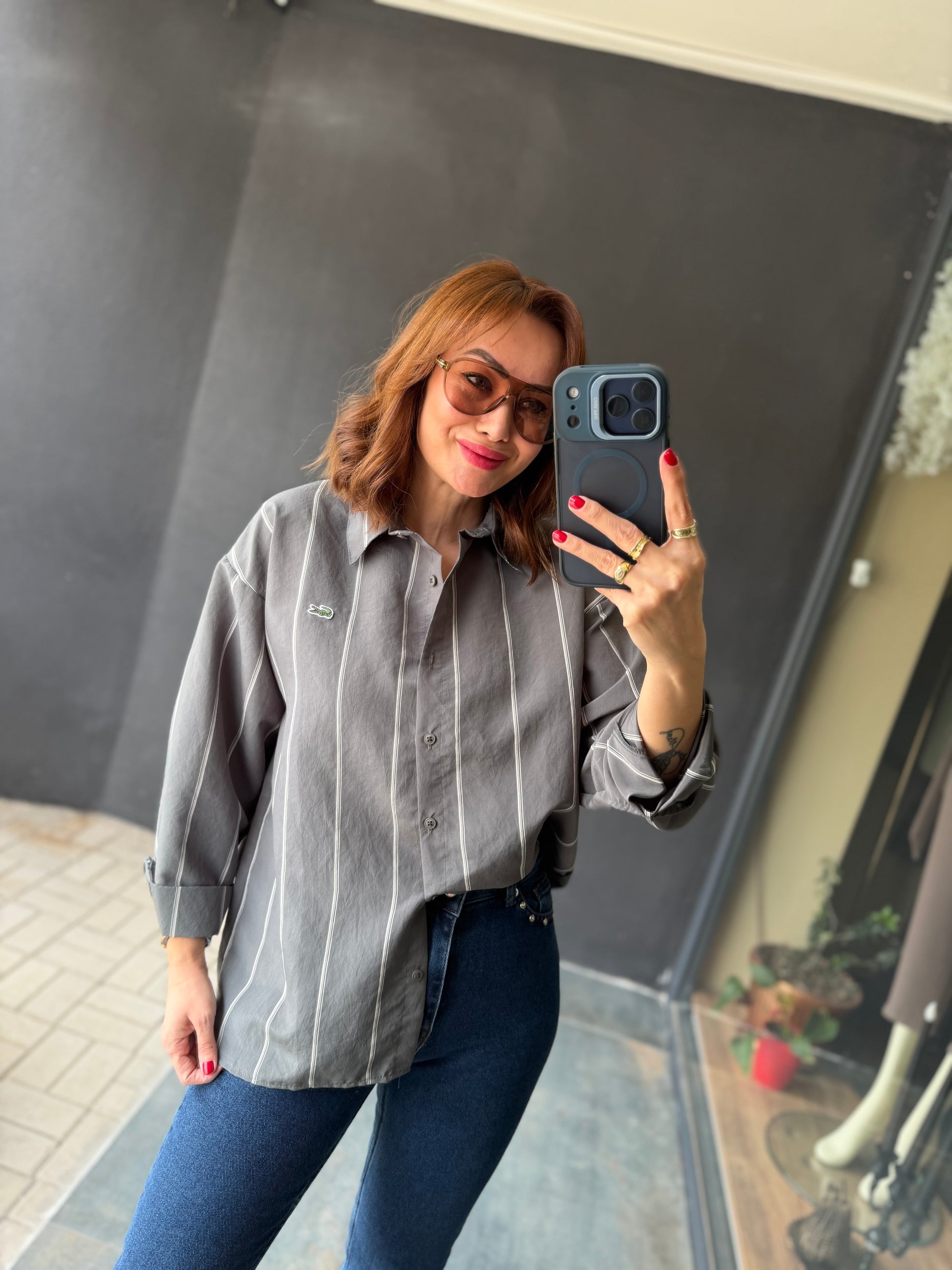 Tiante Gri Tensel Gömlek