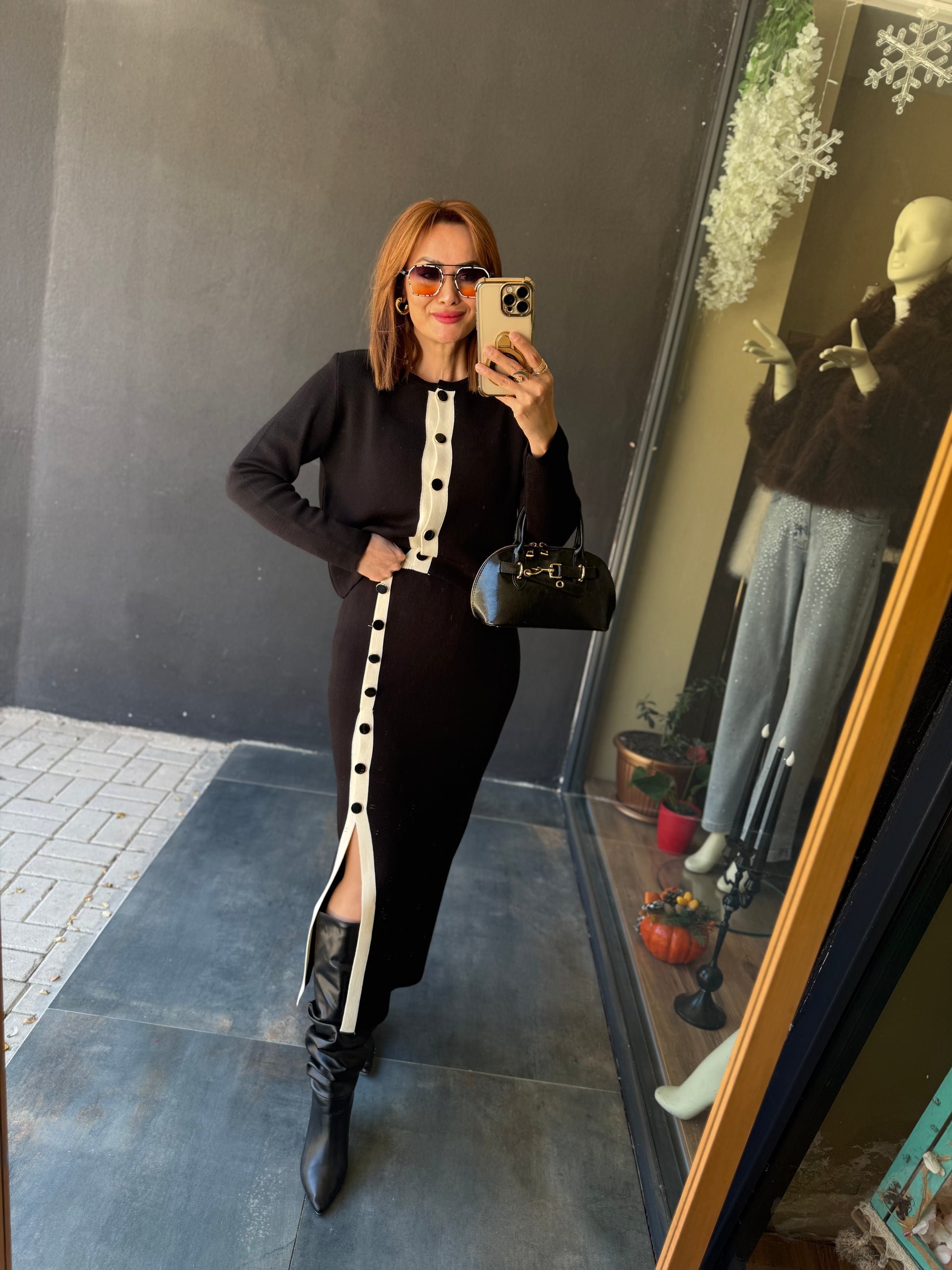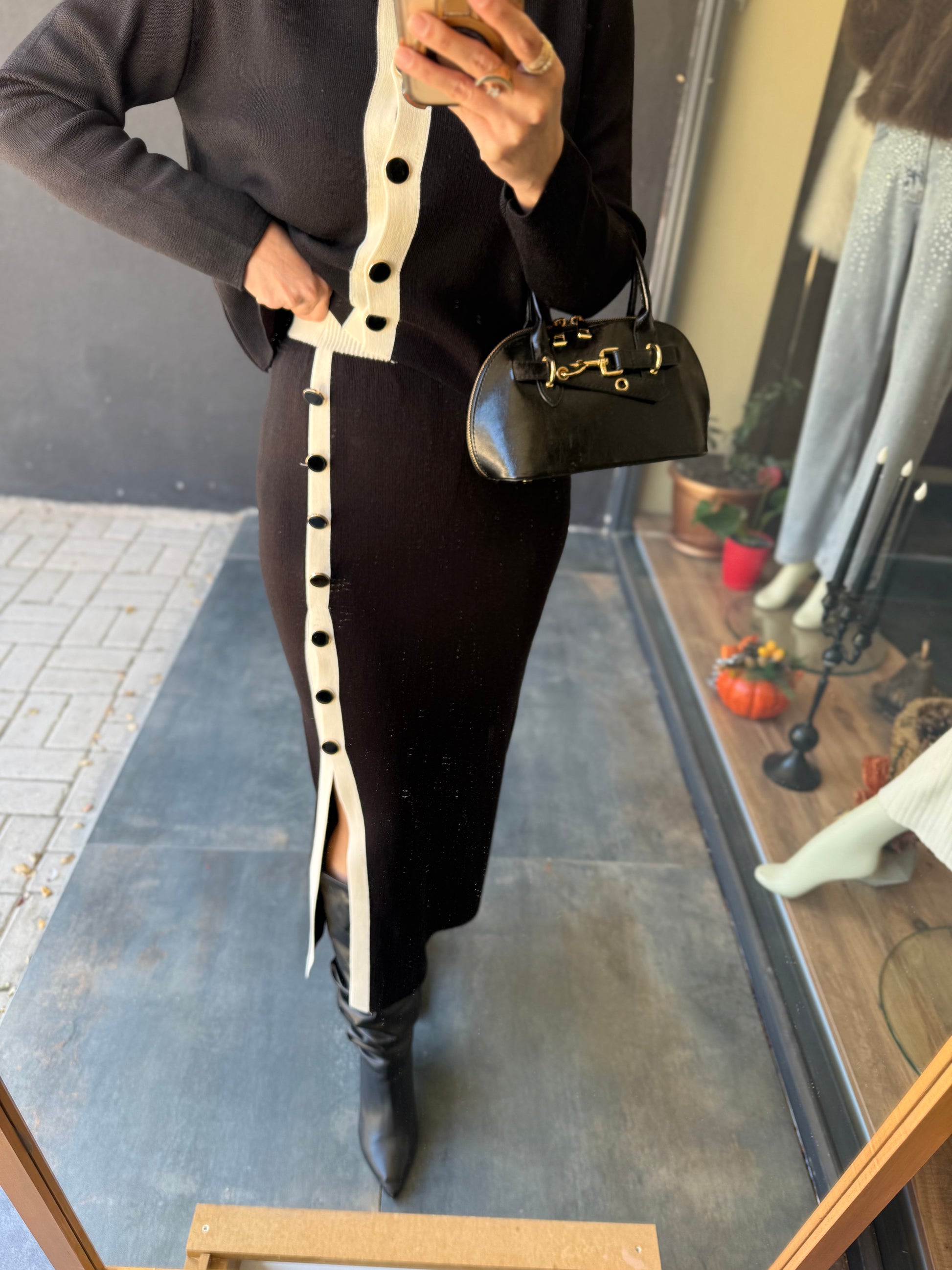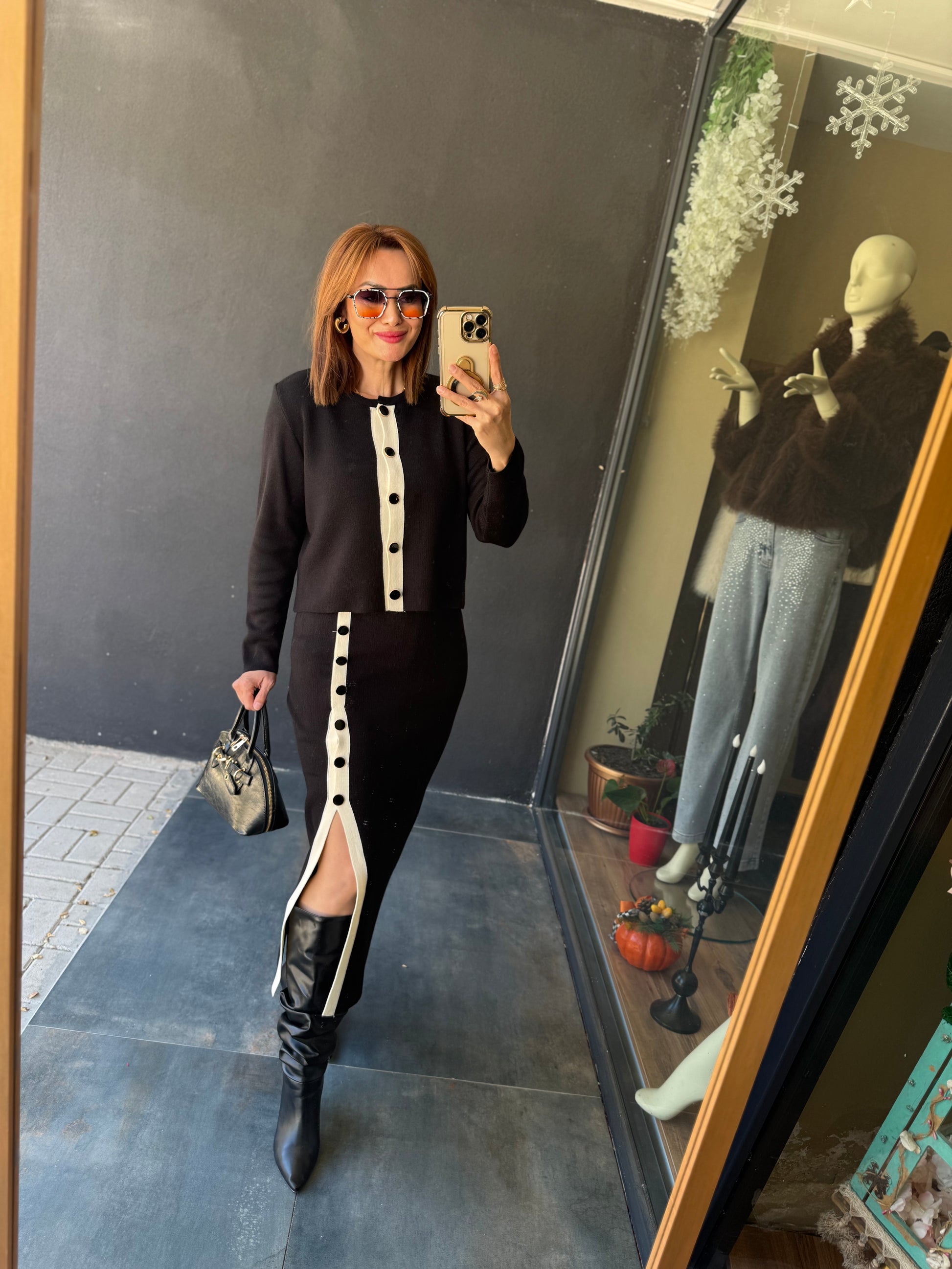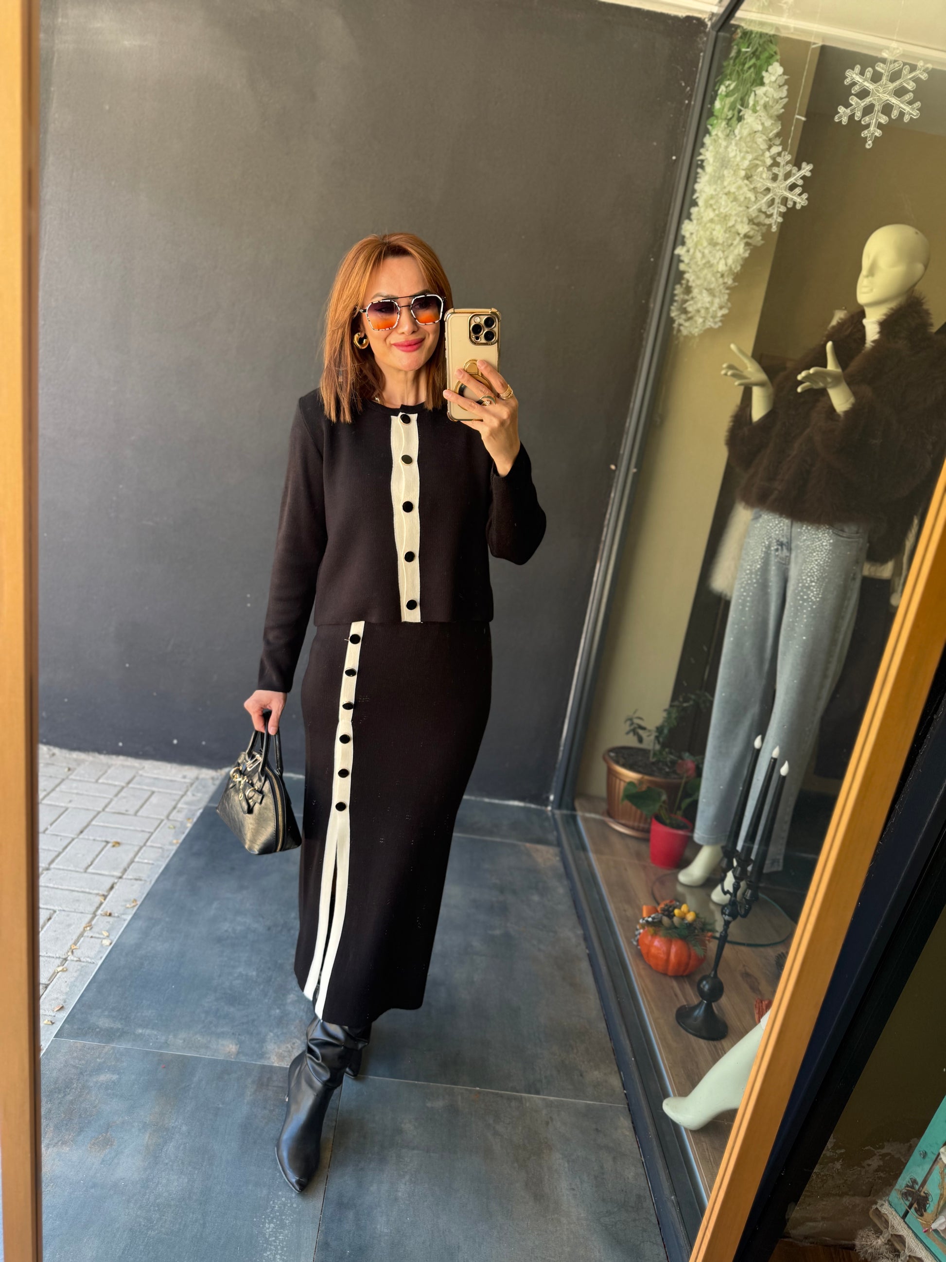 Tria Siyah Düğmeli Etek & Hırka Takım