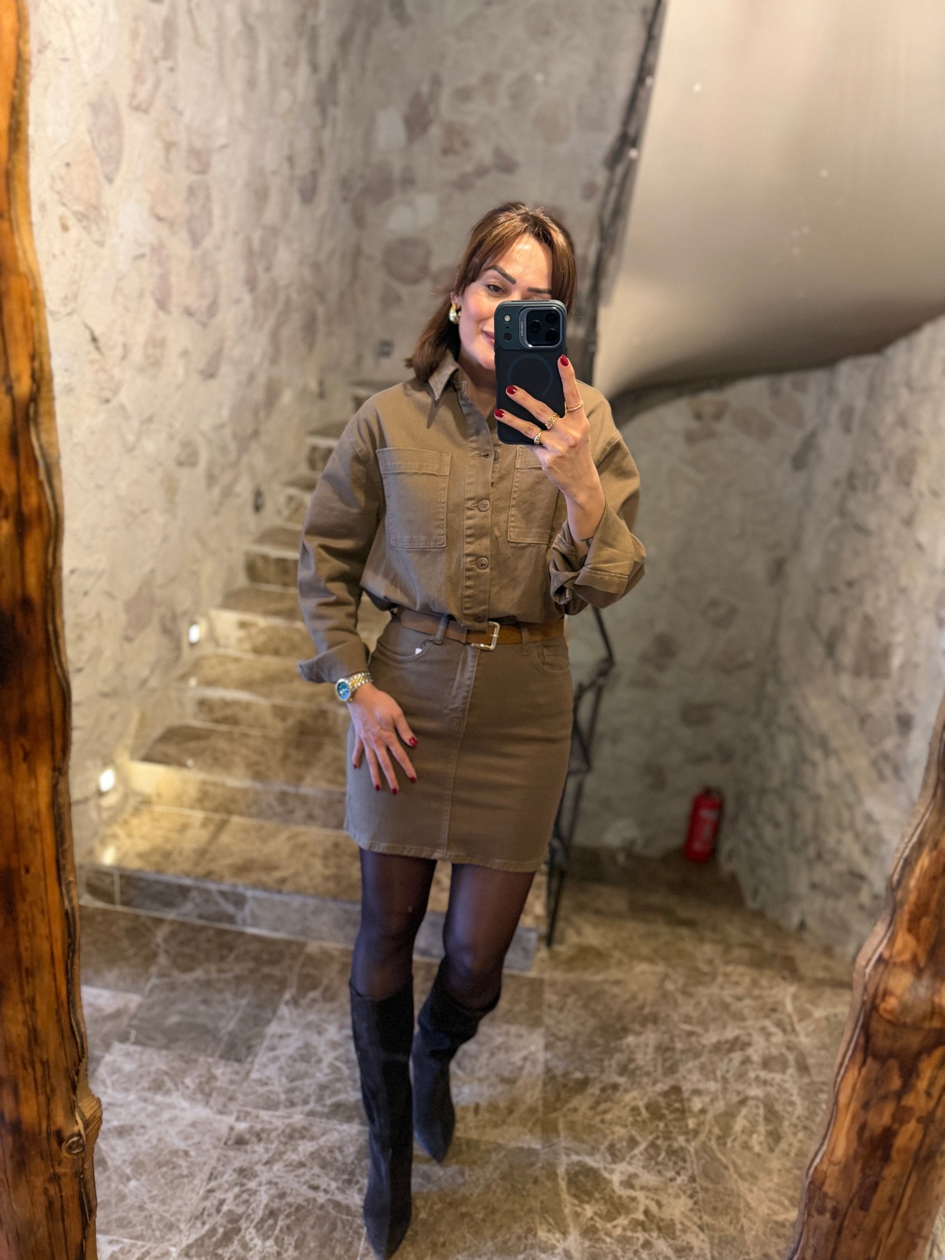 Xlove Nohut Rengi Toparlayıcı Jean Elbise